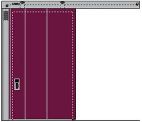Di scorrimento orizzontale realizzata in lamiera d'acciaio pressopiegata e preforata per il fissaggio a mezzo di tasselli (non compresi). Scorrimento aereo su carrelli ad attrito ridotto. L'oliva di scorrimento a pavimento oltre luce garantisce la perpendicolarità dell'anta. Copertura della guida superiore con carter di protezione in lamiera d'acciaio pressopiegata.